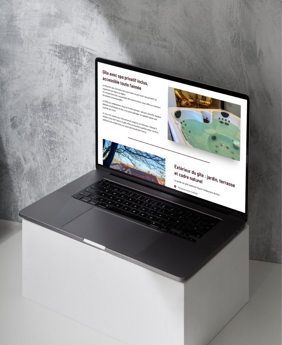 Le gîte nous a confié la création de sa présence en ligne avec pour objectif de mettre en valeur le lieu et faciliter les réservations. Nous avons conçu : une landing page mettant en avant le charme et l'ambiance du gîte, une navigation fluide et intuitive redirigeant vers la réservation en quelques clics, un design qui laisse la place aux photos et à l'atmosphère du lieu, une expérience utilisateur optimisée.